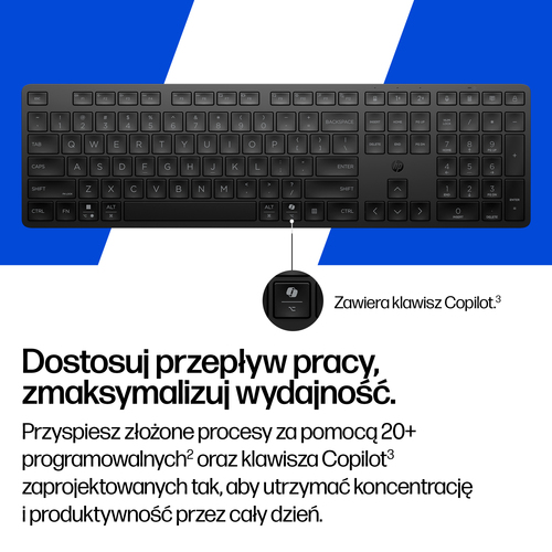 Dostosuj swoją klawiaturę, aby usprawnić zadania i pracować szybciej, dzięki szybkim skrótom. Przejmij kontrolę nad przepływem pracy, dzięki 20+ programowalnym klawiszom[2] i dedykowanemu Copilot[3] zapewniającemu szybki dostęp do AI.